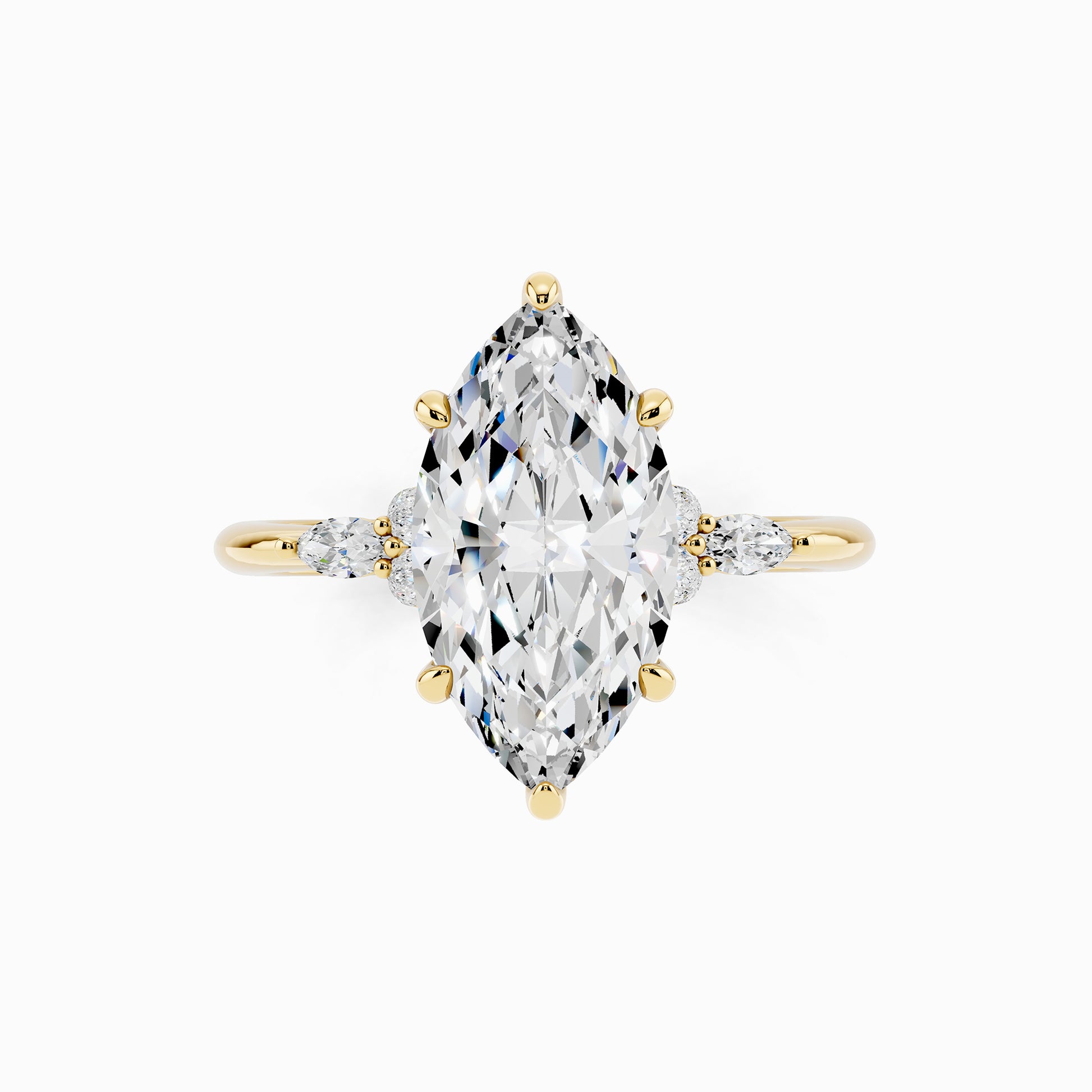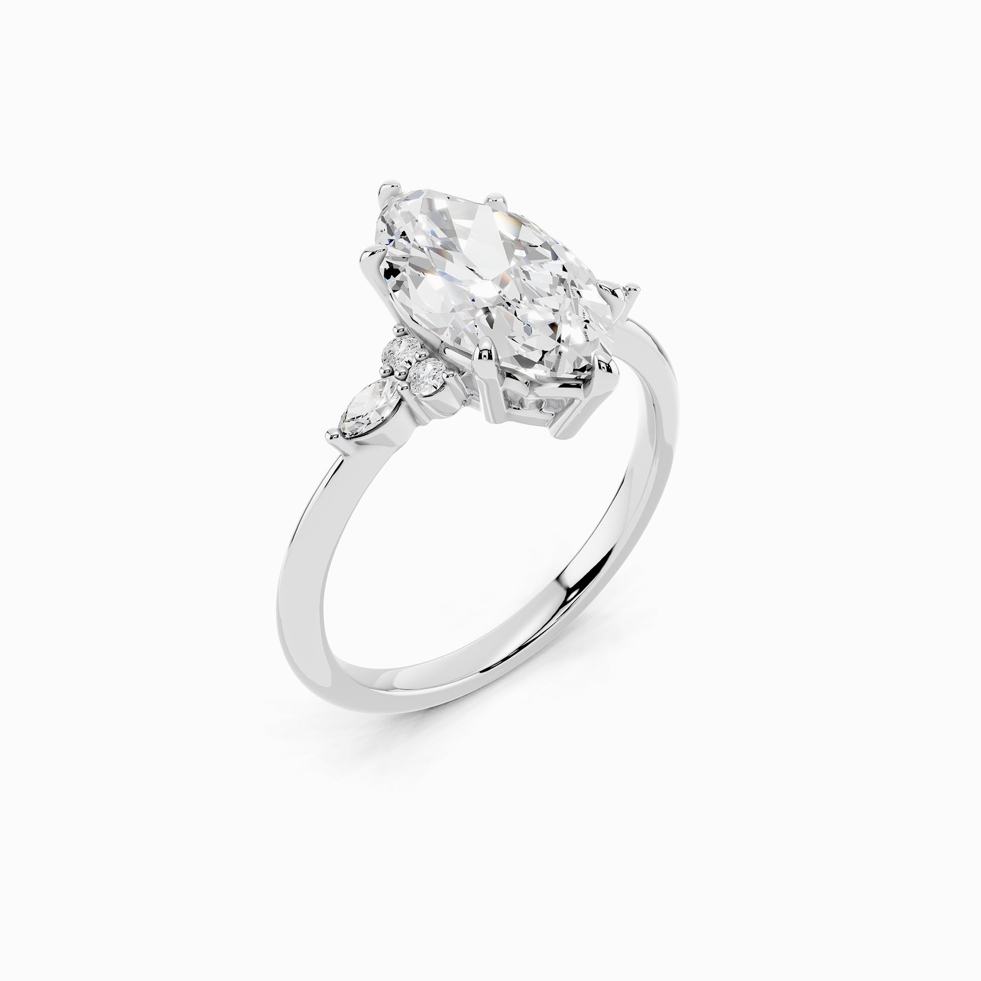 Whispered like a timeless vow, the Astilbe trinity ring showcases a 2-carat marquise-cut lab-grown diamond, framed by two round and one marquise diamond on each side that mirrors the balance of two souls becoming one.
