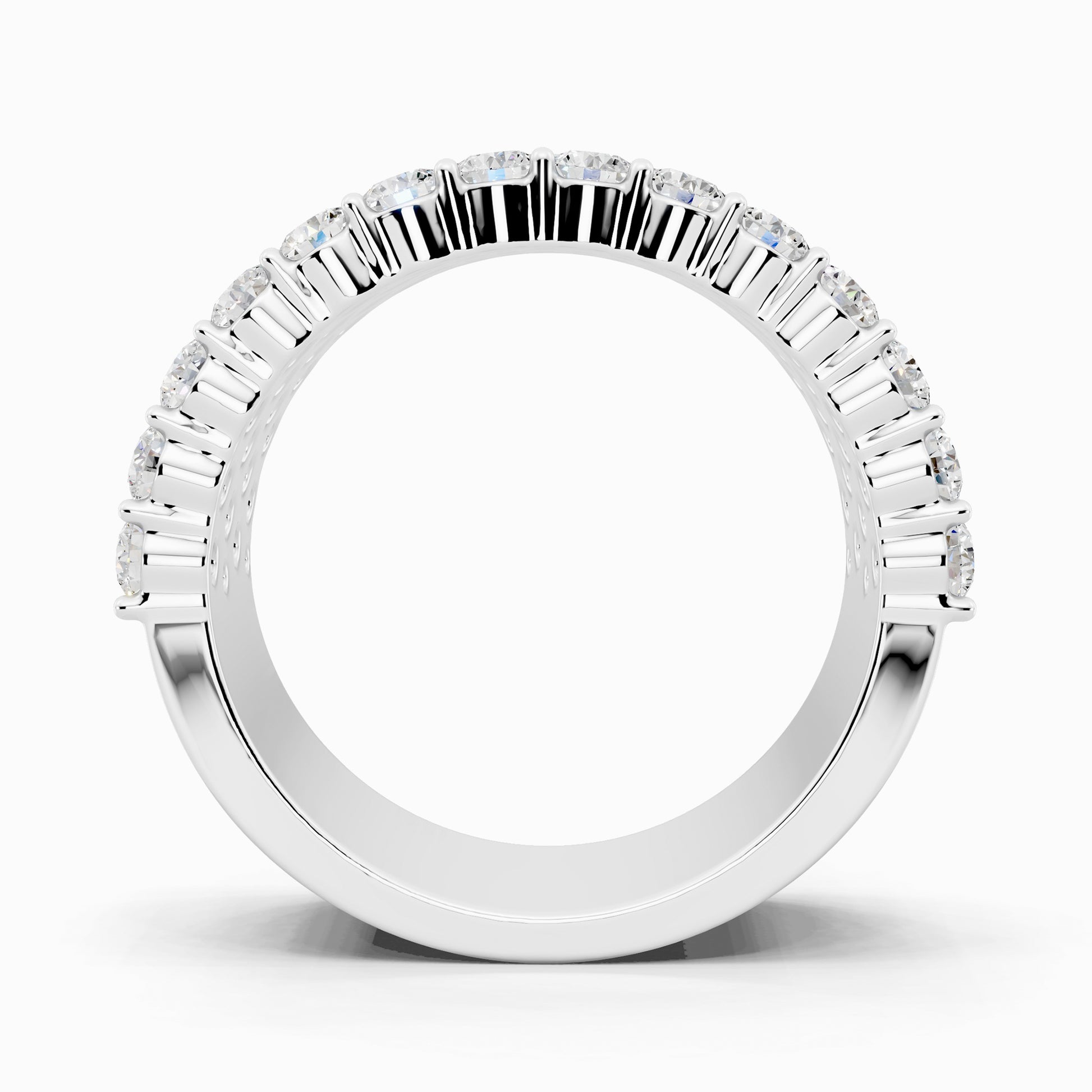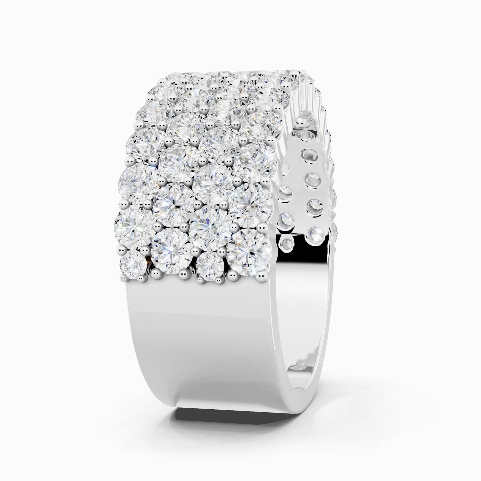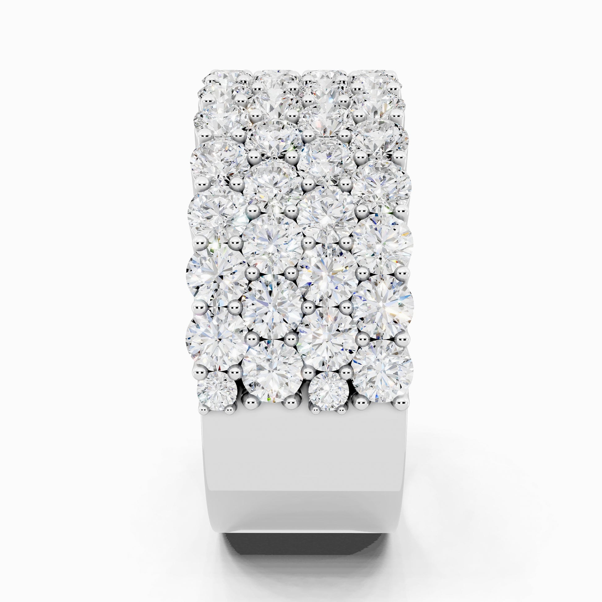 Like love layered in time, the Geranium lab grown diamond ring features four rows of shimmering 58 round diamonds, totaling 3.42 carats, set in a half-eternity design. Crafted for the bride who embraces elegance wrapped in effortless luxury.