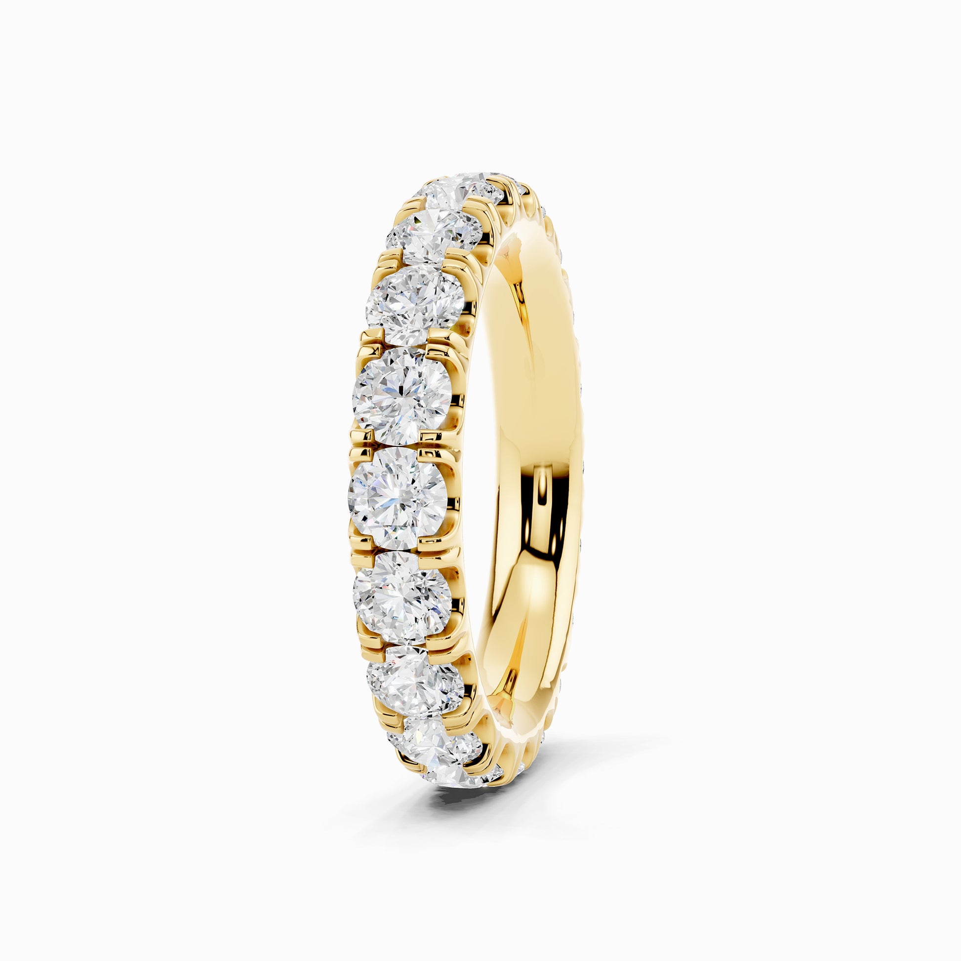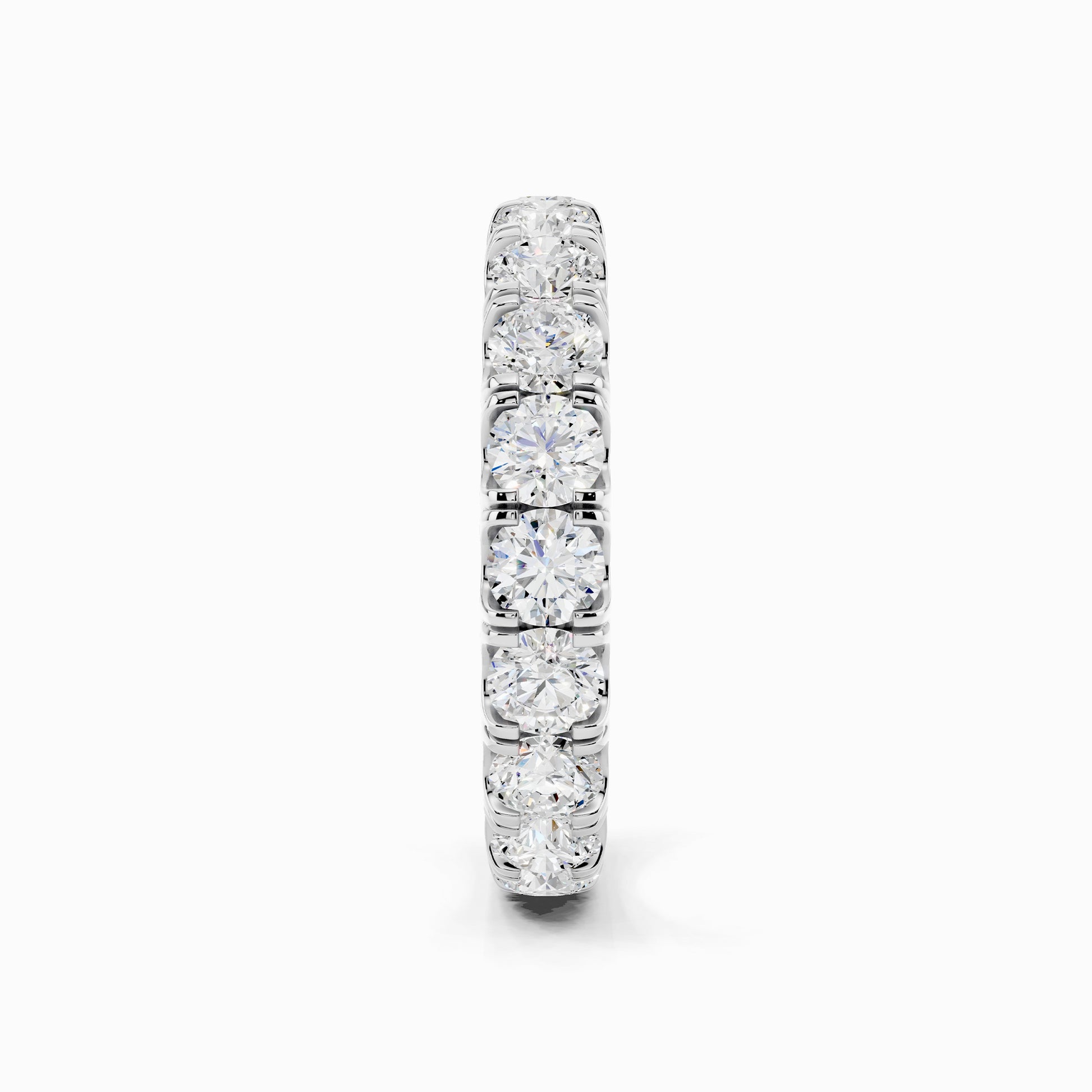 Named for its beauty, the Jasmine wedding ring features 3 carat twenty round-cut diamonds forming a continuous band, a quiet reflection of two hearts becoming one.