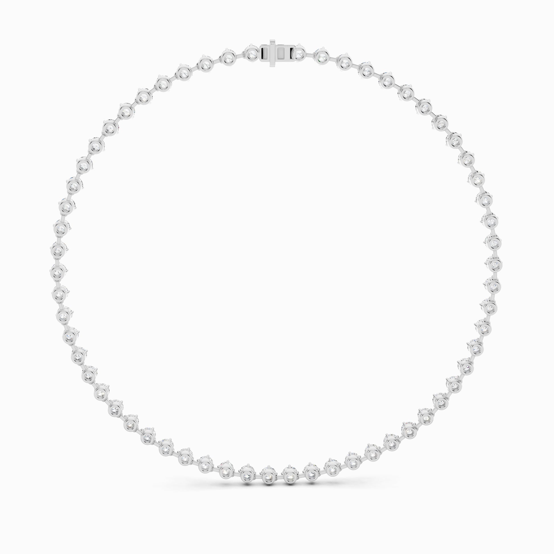 Like a trail of stars encircling the neckline, the Laurel necklace showcases 62 round-cut diamonds, totaling 20 carats of pure brilliance. Designed to celebrate elegance and luminous beauty, Laurel transforms every moment into a luminous celebration of elegance and luxury.