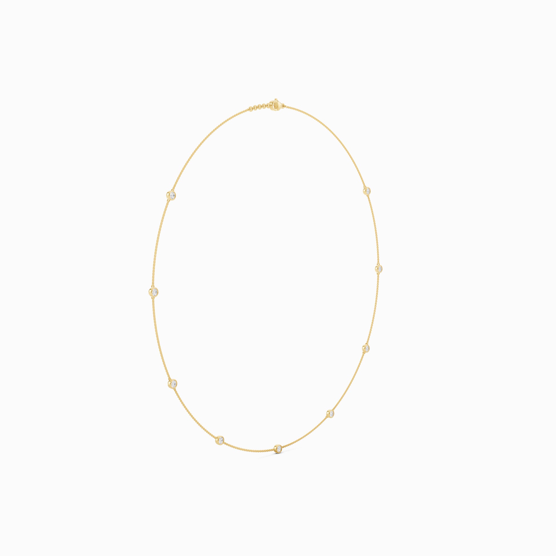 Like stepping stones across time, the Lobelia station lab grown necklace features nine luminous round diamonds, delicately spaced along a fine chain and totaling 0.90 carat. Each diamond marks the power you now own.