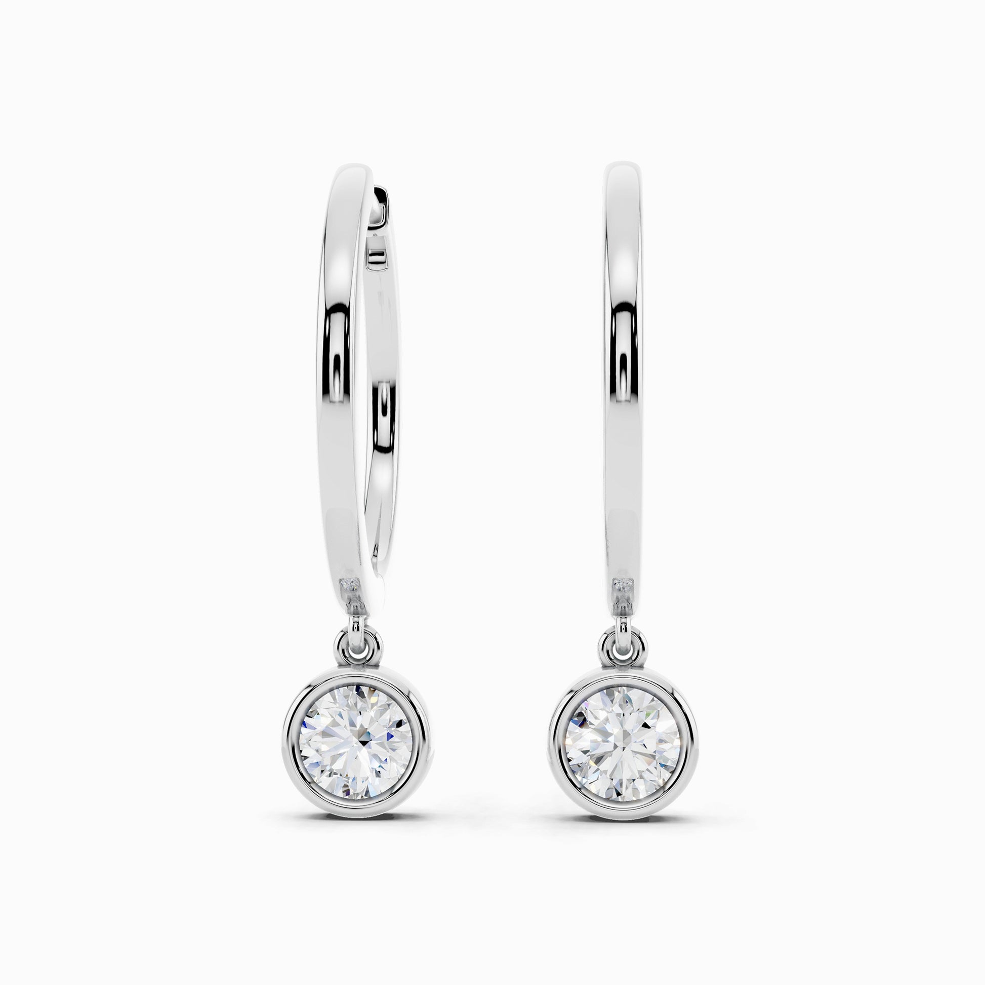 Minimal in form yet rich in detail, this 0.8 carat lab-grown hoop earring features a solitaire round-cut diamond in bezel setting. Like the Nolana bloom that thrives softly against the sun, these hoop earrings symbolizes balance strength with grace.