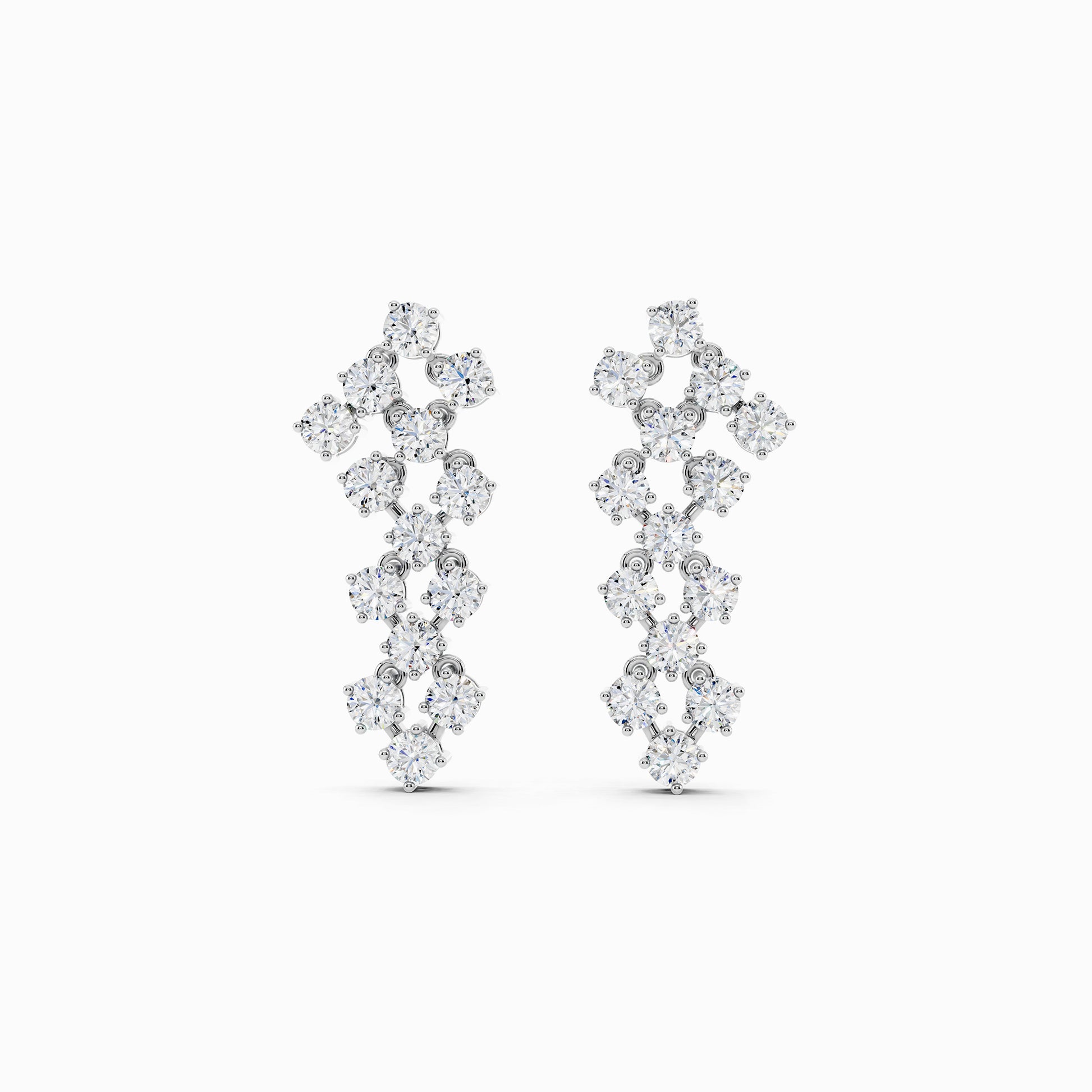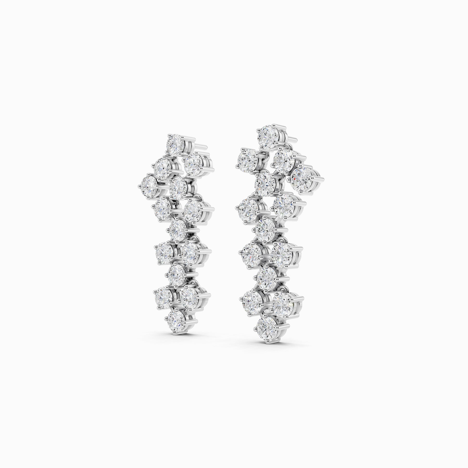 Olea cluster earrings feature 28 round-cut diamonds totaling 2.8 carats, arranged in a striking cluster design that transforms the ear into a canvas of shimmering stars.