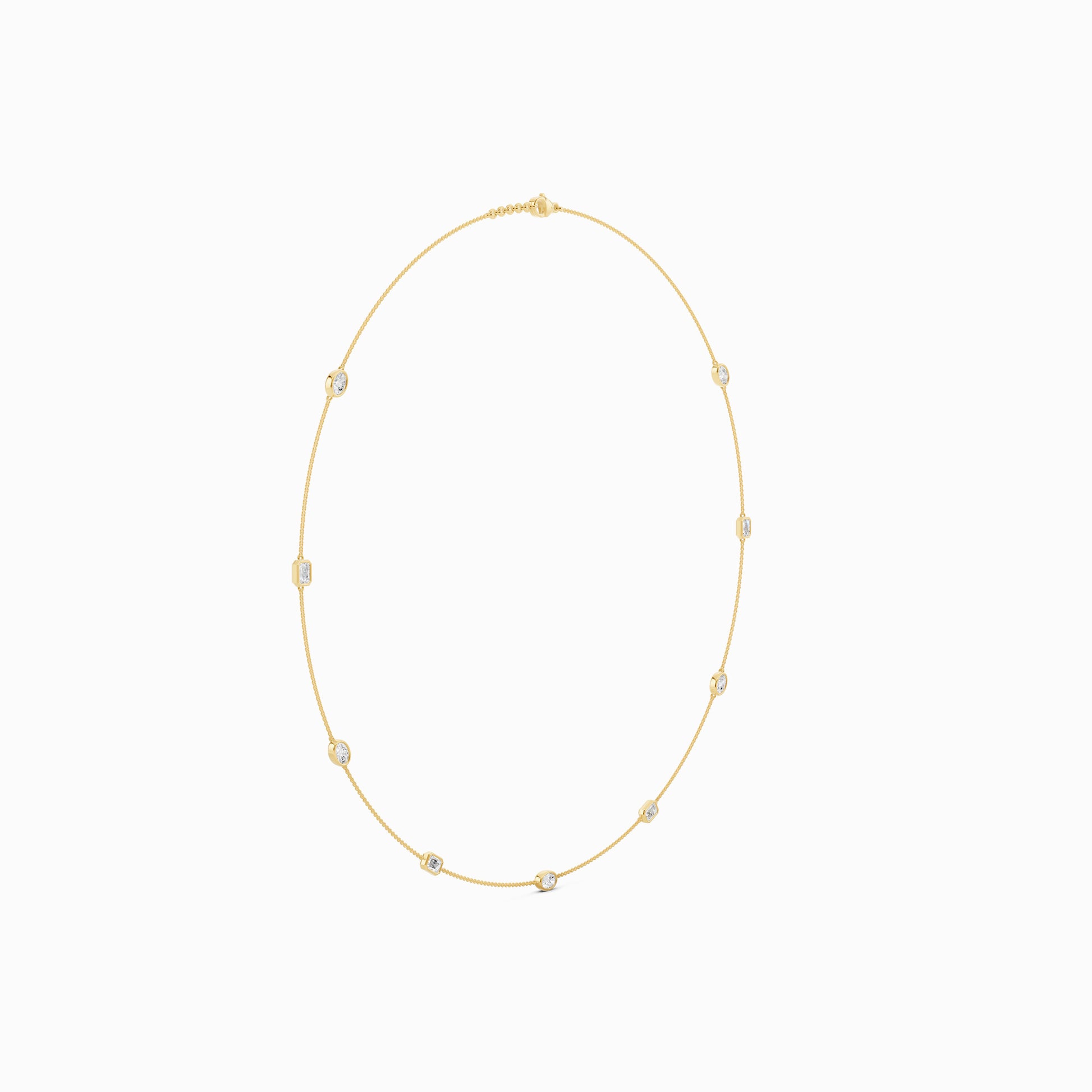 Crafted for someone who moves with quiet strength, this necklace features a gentle rhythm of five oval and four emerald-cut lab grown diamonds totaling 1.80 carats. Each stone is a reflection of the beauty she carries within.