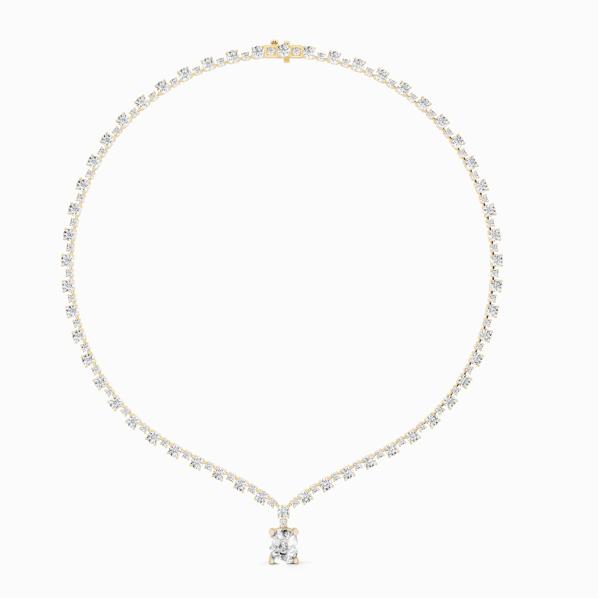 Inspired by the delicate bloom of a rare flower, the Valeriana necklace features a cushion-cut diamond at its heart, accented by 113 round-cut diamonds, totaling 22 carats of radiant brilliance. Each diamond catches the light, twinkling like morning dew reflecting timeless beauty.